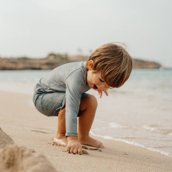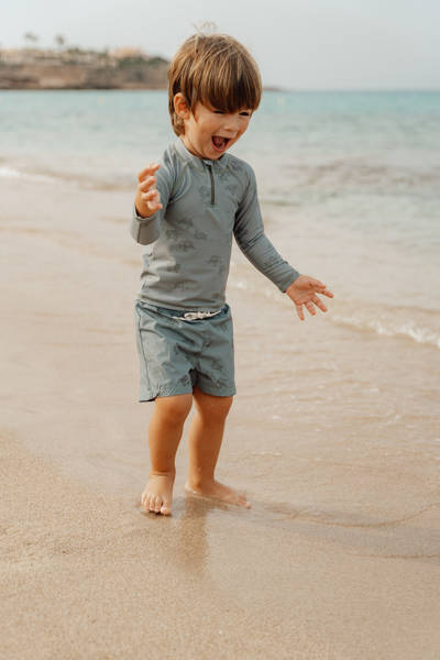 Ta koszulka z długim rękawem ochroni malucha przed słońcem podczas zabawy na powietrzu i w wodzie. Niezależnie od tego, czy lubi budować zamki z piasku, czy pluskać się w wodzie, ta elastyczna koszulka zapewni mu wygodę przez cały dzień. Dzięki zamkowi błyskawicznemu jej zakładanie i zdejmowanie jest bardzo proste. Koszulka do kąpieli wykonana jest z poliestru pochodzącego z recyklingu z domieszką elastanu. Dzięki filtrowi UPF 50+ skutecznie chroni przed promieniowaniem UV. Stanowi świetne uzupełnienie do pozostałych produktów Little Dutch z tej kolekcji.