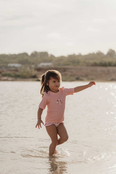 Koszulka do kąpieli z falbankami od Little Dutch z kolekcji Seahorse Pink.