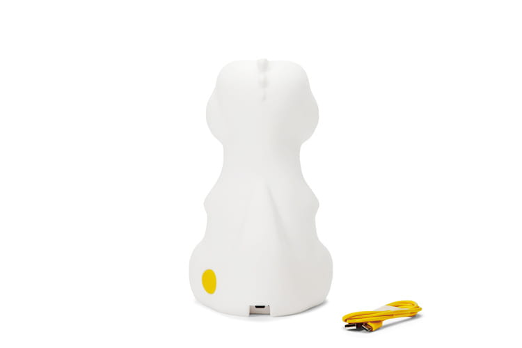 Lampka Rena o wysokości 25cm to jeden z trzech dino-przyjaciół, który wniesie przytulne, ciepłe światło do pomieszczenia. Dzięki uroczemu designowi będzie stanowić piękną ozdobę każdego pomieszczenia (nie tylko dziecięcego pokoju). Lampka wykonana jest z odpornego na dziecięce ząbki silikonu, bezpiecznego i wolnego od BPA.