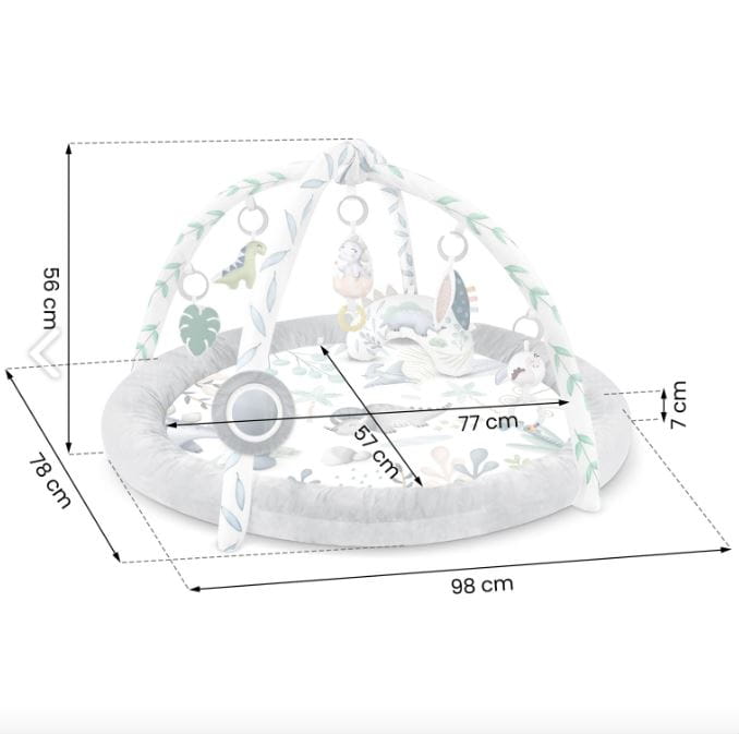Sposób konserwacji: pałąki przecierać wilgotną ściereczką i czyścić powierzchniowo. Podstawę maty można prać w pralce w niskiej temperaturze.