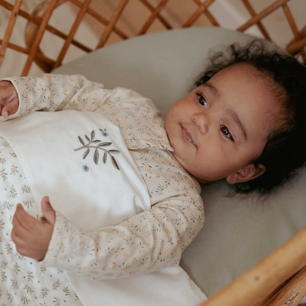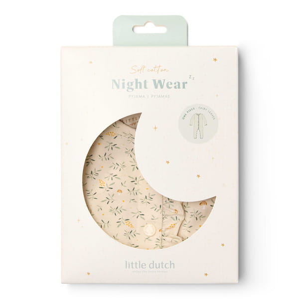 Piżamka jednoczęściowa Fairy Leaves od Little Dutch. Wykonana z bawełny organicznej, piżamka zapewni miękkość i komfort dla skóry dziecka podczas snu. Zapięcie na zatrzaski z przodu i w kroku ułatwi przebieranie i zmianę pieluchy. Delikatny nadruk małych listków i falbanki wzdłuż zapięcia dodają uroku. Zapakowana w piękne pudełko, idealnie nadaje się na prezent. Dostępna w rozmiarach 62/68 i 74/80.