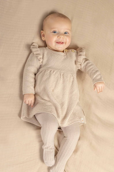 Rajstopy Sand od Little Dutch. Te beżowe rajstopki z dzianiny są idealne na każdą okazję i utrzymają nogi dziecka w cieple podczas chłodniejszych dni. Wykonane z miękkiego materiału są wyjątkowo elastyczne, by zapewnić komfort i wygodę dziecku. Wykonane z wolnej od chemikaliów bawełny organicznej z logo Little Dutch na podeszwie. Stanowią świetne uzupełnienie do pozostałych ubranek i akcesoriów od Little Dutch.