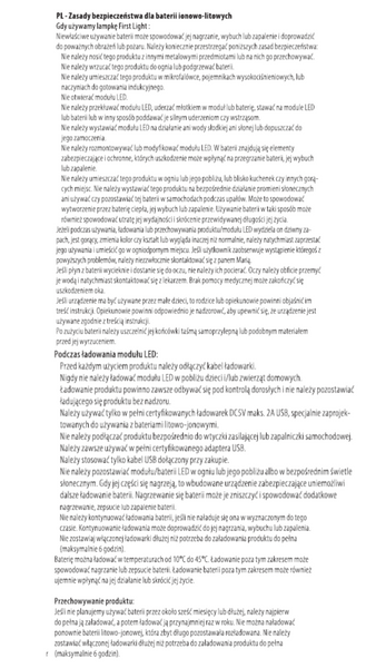 UWAGA. W zestawie znajduje się żółty kabel do ładowania, pierwsze pełne ładowanie powinno trwać maksymalnie 6 godzin. Jako dodatkowy środek bezpieczeństwa, lampka nie działa podczas ładowania.