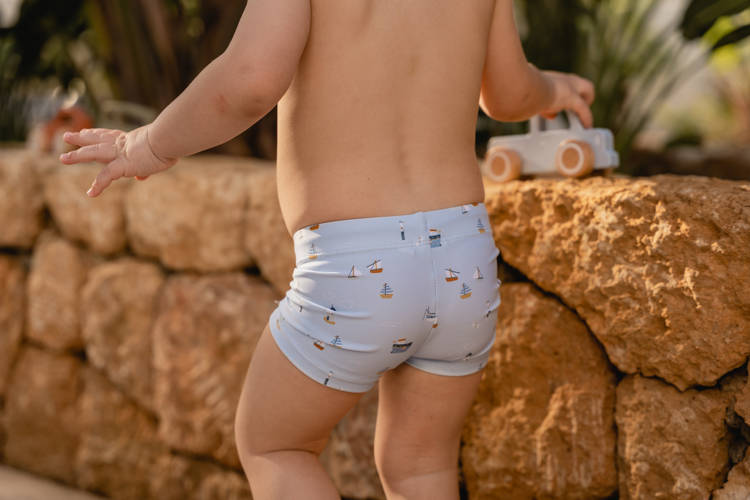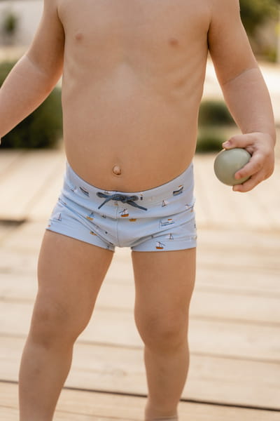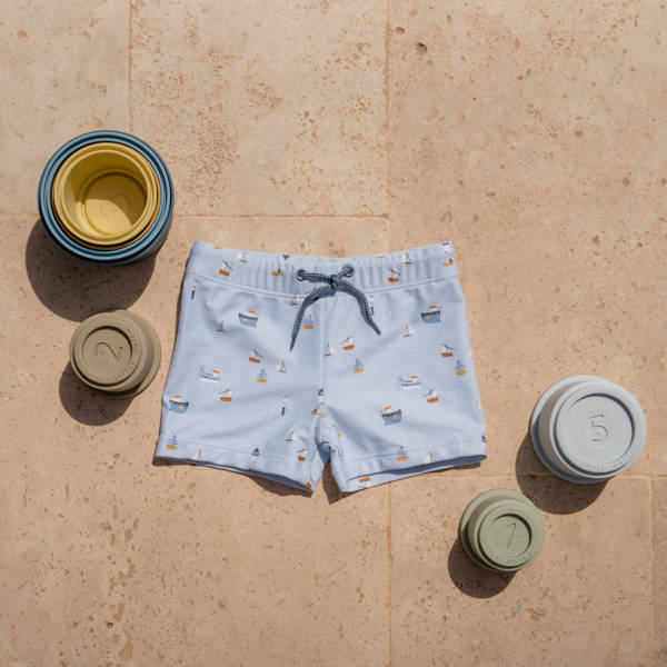 Spodenki kąpielowe od Little Dutch z kolekcji Little Sailors Bay Blue, zapewniające pełną swobodę podczas aktywności w wodzie.