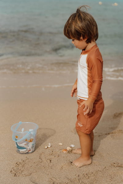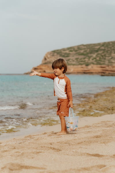 Pływaj, pluskaj się i baw przez cały dzień! W tych wygodnych spodenkach do pływania nic nie powstrzyma Cię przed zabawą w basenie lub na plaży. Ruszaj na przygodę i szukaj wielu skarbów ukrytych w piasku i wodzie. Te szorty kąpielowe posiadają elastyczny pas na gumkę oraz sznurek, zapewniając idealne dopasowanie podczas zabawy i pływania. Spodenki kąpielowe są wykonane z poliestru pochodzącego z recyklingu, który posiada również filtr chroniący malucha przed promieniowaniem UV. Stanowią idealne uzupełnienie dla pozostałych tekstyliów z kolekcji Vintage Sunny Stripes od Little Dutch.