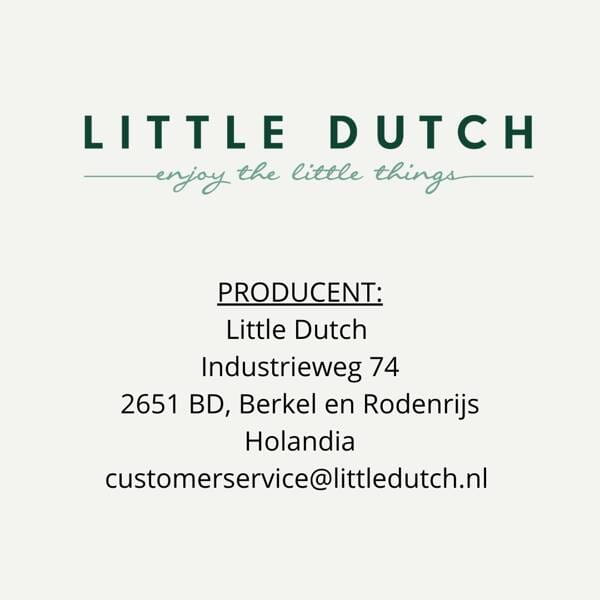 Little Dutch to holenderska firma rodzinna, prowadzona przez małżeństwo, które wkłada całe serce w tworzenie produktów dla najmłodszych. W ofercie marki znajdują się doskonałej jakości tekstylia, produkowane z bawełny organicznej z certyfikatem Oeko-tex, takie jak ręczniki, śpiworki do spania, otulacze, akcesoria do pokoików dziecięcych oraz zabawki sensoryczne dla niemowląt, jak również zabawki, czy pojazdy wytwarzane z drewna. Produkty Little Dutch cechuje spokojna, pastelowa kolorystyka.