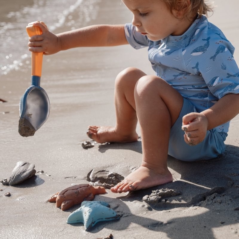 W komplecie znajduje się urocza łopatka oraz dwie foremki kwiatek i muszelka w delikatnych pastelowych kolorach. Dzięki nim każdy dzień na plaży lub w piaskownicy zamienia się w kreatywną, pełną wyobraźni zabawę.