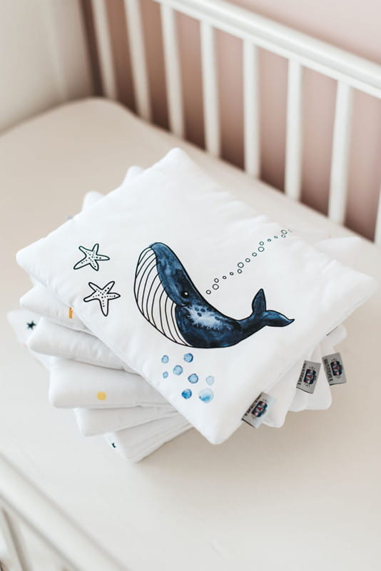 Płaska poduszka dla niemowląt Wieloryb polskiej marki PstrykSmyk.
