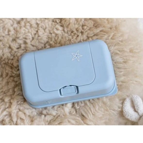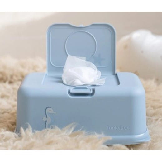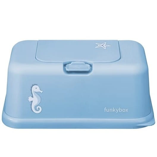 Niebieski pojemnik na chusteczki z konikiem morskim i rozgwiazdą holenderskiej marki Funkybox.
