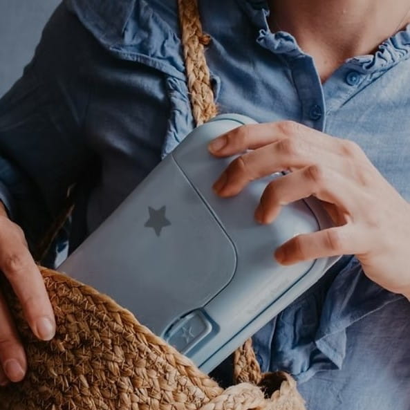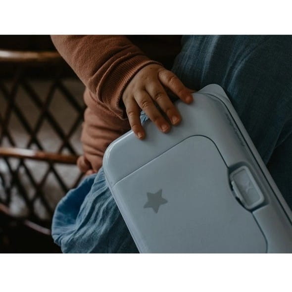 Absolutny must have podczas spaceru z dzieckiem, wycieczki czy podróży samochodem. Pojemnik jest na tyle mały, że zmieści się w każdej torebce, wózku czy schowku samochodowym.