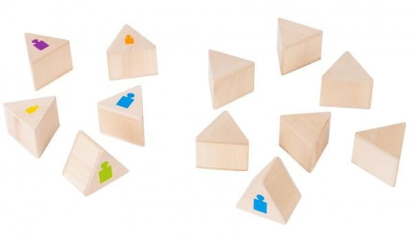 Gra, która zainteresuje i pomoże Twojemu dziecku w ćwiczeniu koncentracji uwagi, pamięci oraz rozpoznawaniu wagi przedmiotów. Zadaniem dziecka jest połączyć w pary wszystkie drewniane trójkąty rozpoznając je po ich ciężarze. Zestaw zawiera 12 elementów - drewnianych trójkątnych klocków o różnej wadze (6 par).