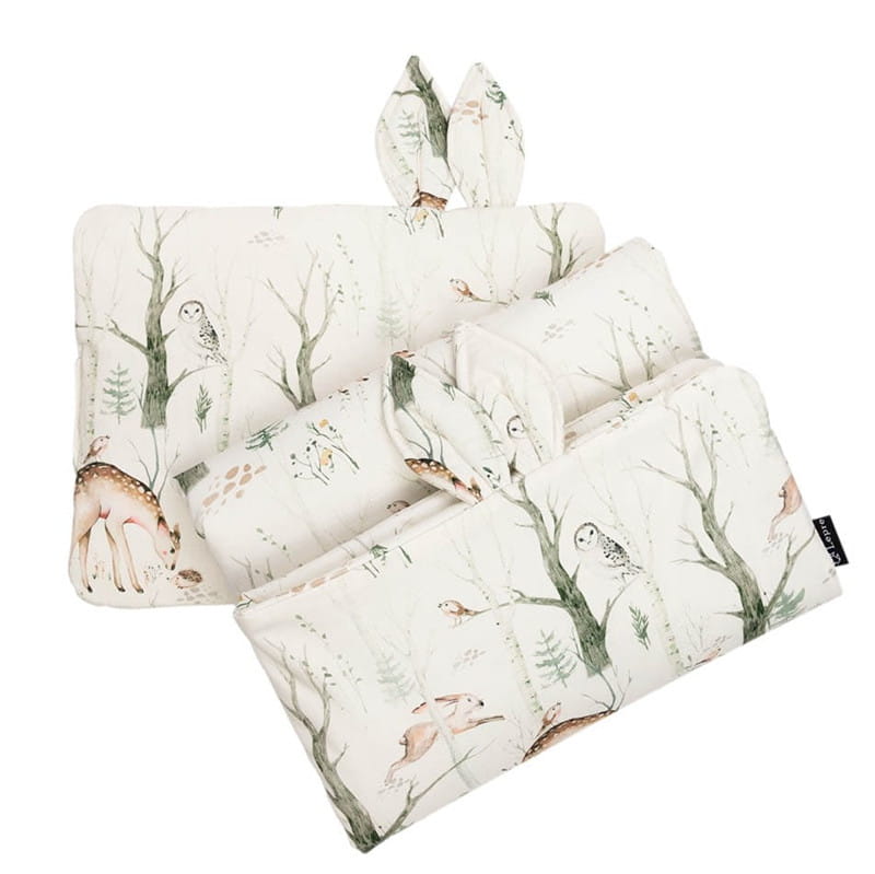 Komplet bawełnianej pościeli z wypełnieniem i uroczymi uszkami Leśny Raj polskiej marki Lepre.