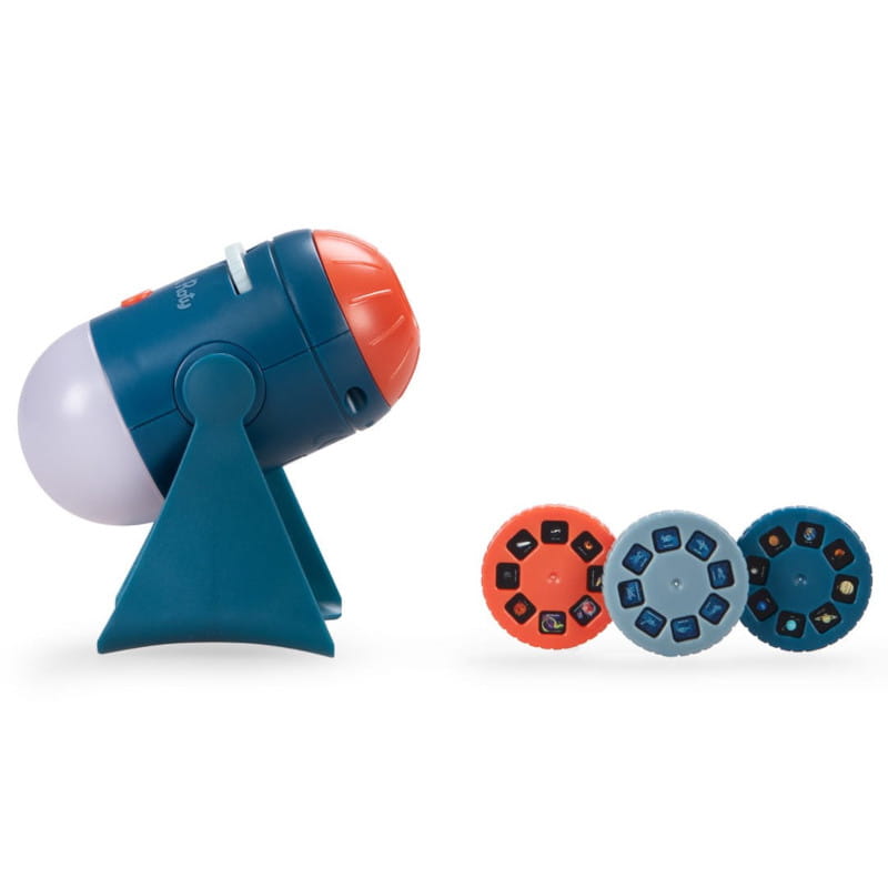W zestawie są 4 krążki ze slajdami. Dzięki nim dziecko odkryje przestrzeń kosmiczną, konstelacje i planety.
