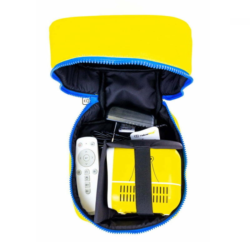 Travel bag to sprytne przechowywanie w domu i łatwe przenoszenie projektora YellowWall podczas podróży. Teraz Twój ulubiony projektor możesz zabrać wszędzie dzięki starannie wykonanej walizeczce w energetycznym żółtym kolorze. Wygodnie spakujesz projektor, ładowarkę i pilot. Wnętrze torby zostało tak zaprojektowane, by zapewnić dziecku wygodę pakowania i chroniło projektor przed zarysowaniami.