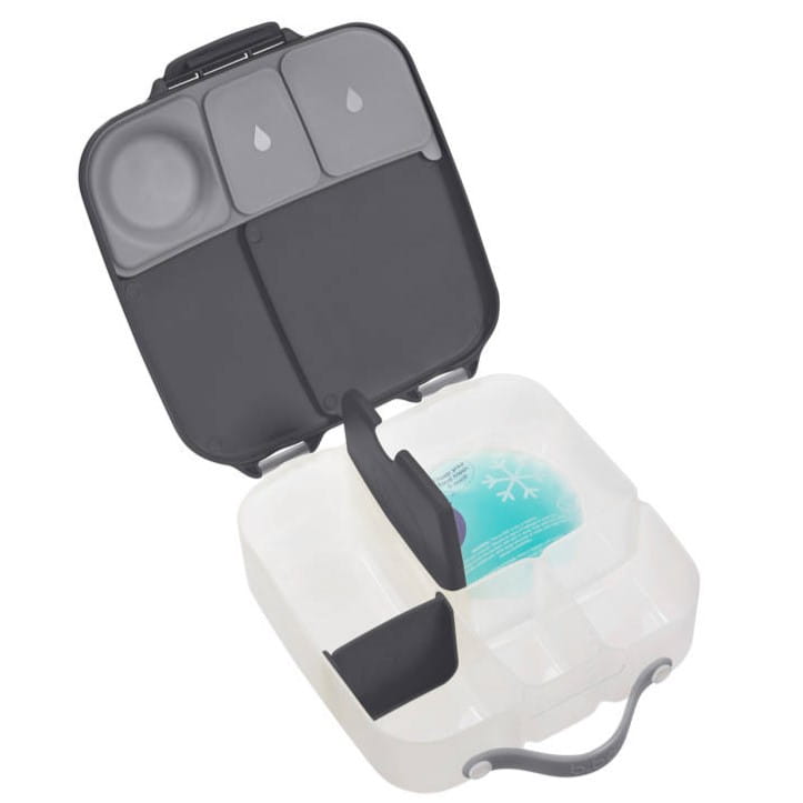 Duży lunchbox z uchwytem do przenoszenia, posiada kilka przegródek różnej wielkości, które można dopasować do pakowanego jedzenia. Wyposażony w miejsce na wkład chłodzący (w zestawie) świetnie sprawdzi się jako lunchbox do szkoły, przedszkola czy na wycieczkę.