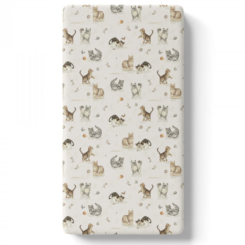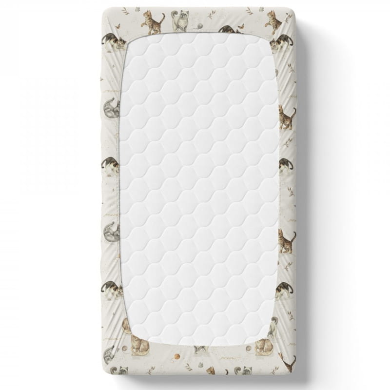 Prześcieradło bawełniane z gumką do łóżeczka 60 x 120 cm we wzorze z kotkami marki BabySteps.