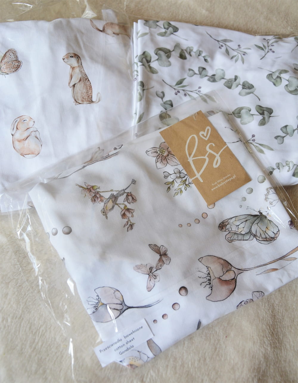 Prześcieradło bawełniane z gumką do łóżeczka 70 x 140 cm we wzorze Nature marki BabySteps.