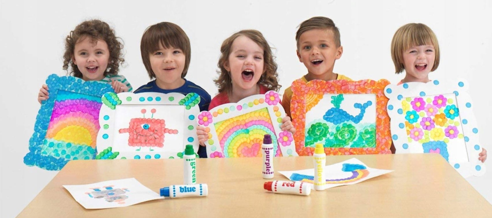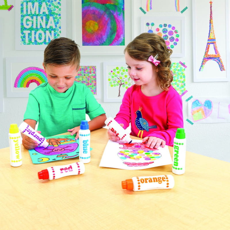 Bez wody, bez pędzelków, bez plam, bez bałaganu, bez nerwów. Duże Flamastry Kropkowe to idealne narzędzie do nauki i zabawy z małymi dziećmi, które uwielbiają zabawę w kolorowanie. Dzięki łatwości stawiania dużych, kolorowych kropek, dzieci będą kolorować, malować, tworzyć i uczyć się bez frustracji i bałaganu. Dzięki swoim walorom, flamastry od firmy Do-A-Dot Art, są standardowym wyposażeniem amerykańskich przedszkoli i szkół.