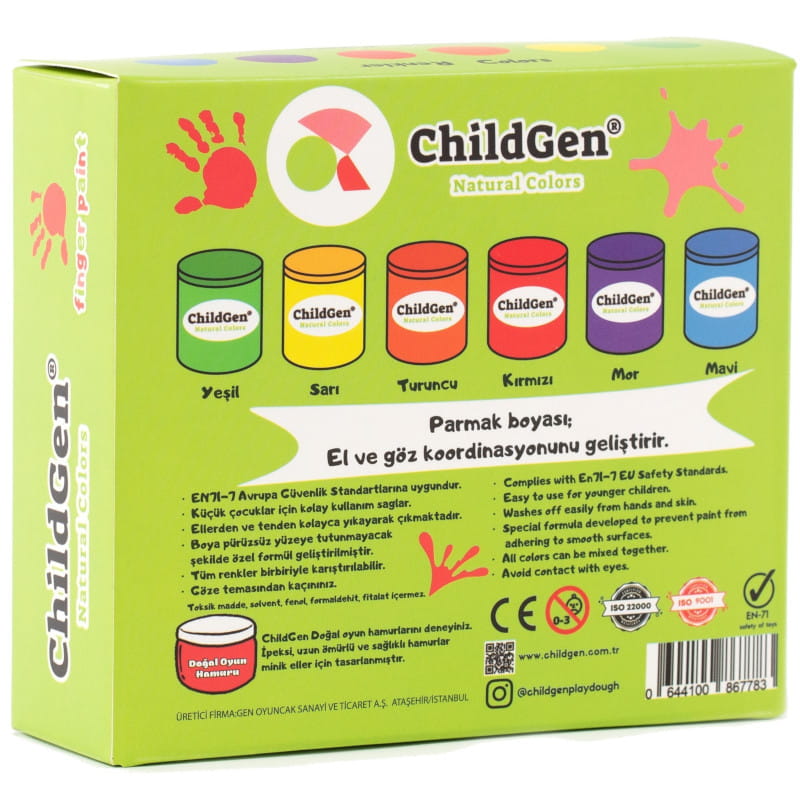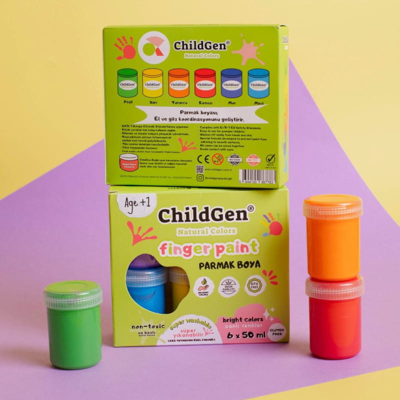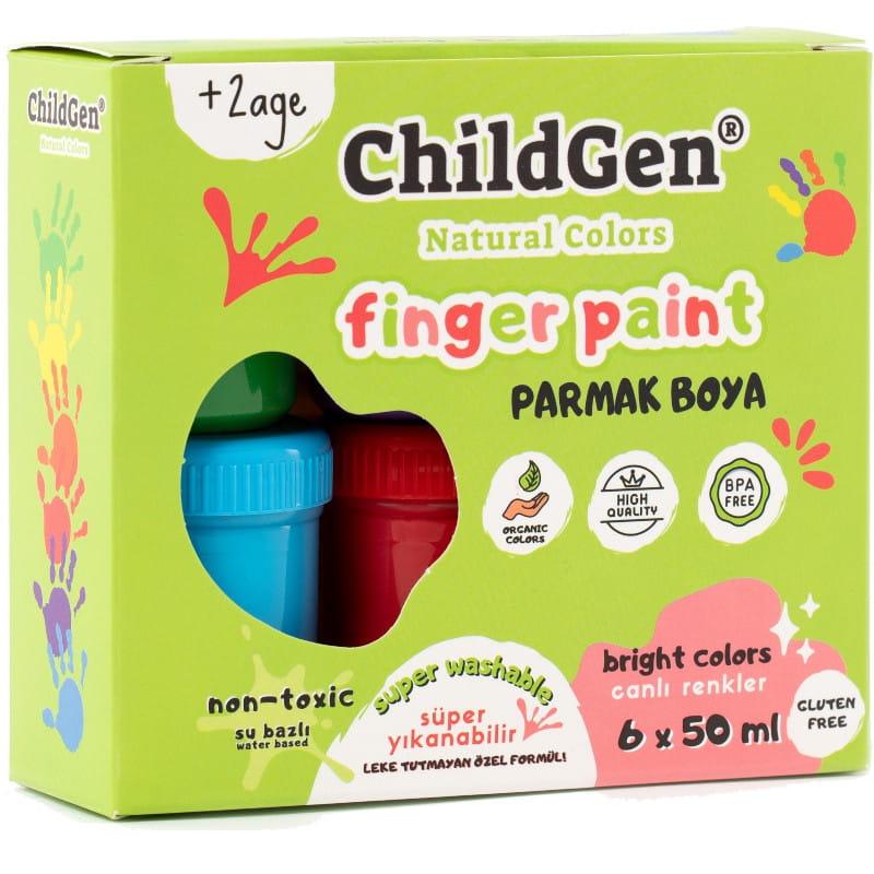 ChildGen - Super zmywalne farby do malowania palcami - Zestaw 6 kolorów.