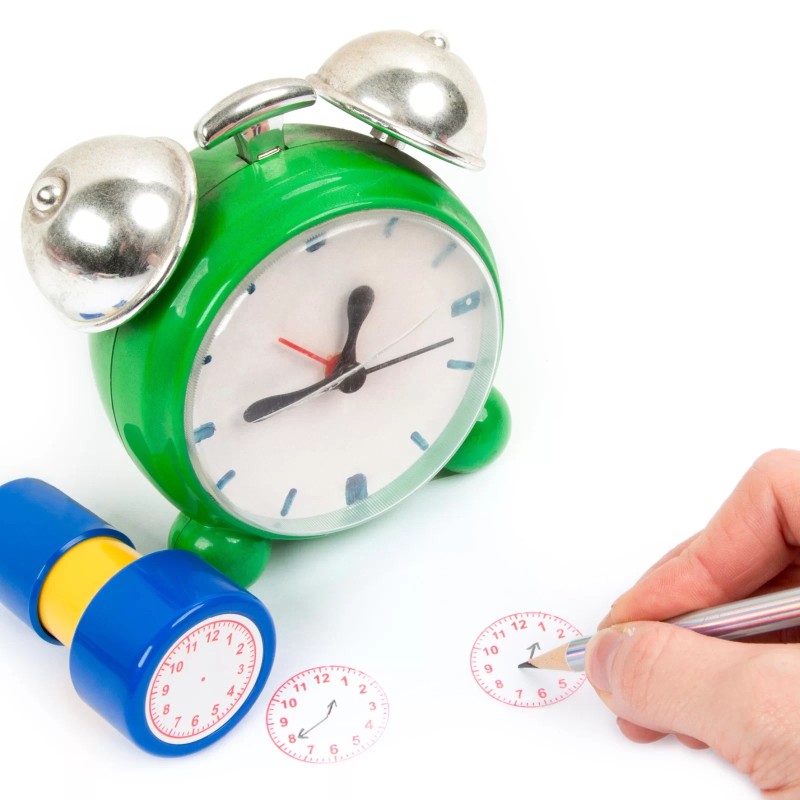 Stempel dla dzieci do nauki godzin na zegarze to niezastąpiona pomoc dydaktyczna nie tylko dla rodziców, ale i nauczycieli.
