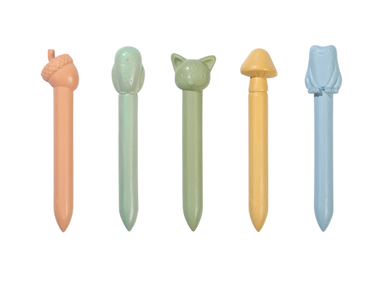 Opakowanie zawiera 5 kredek w pastelowych kolorach i z uroczymi końcówkami w różnych kształtach nawiązujących do kolekcji Forest Friends.
