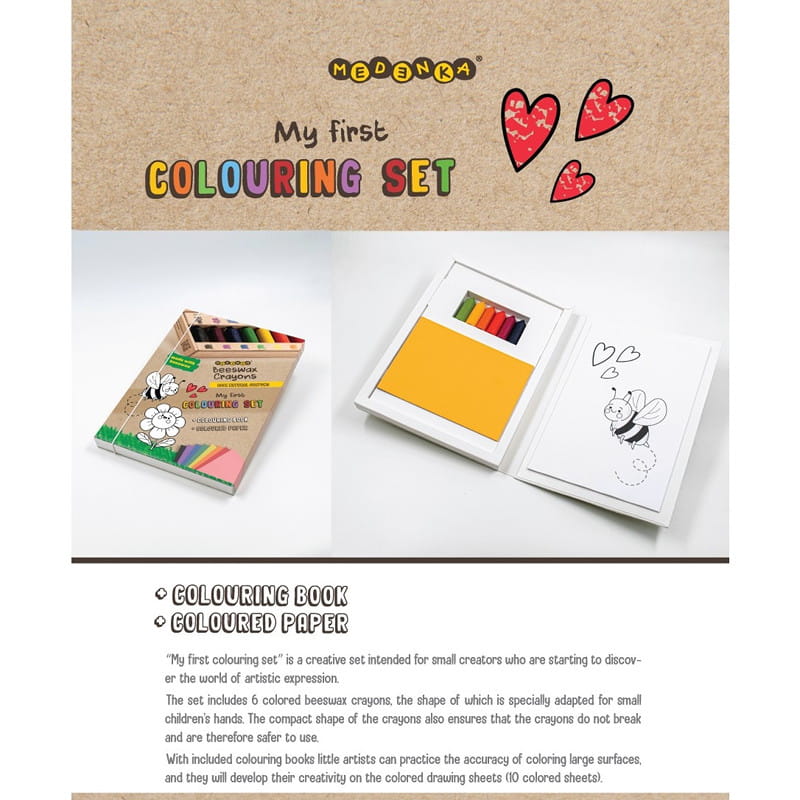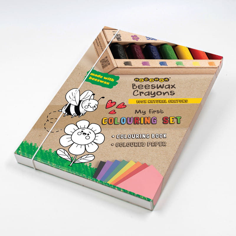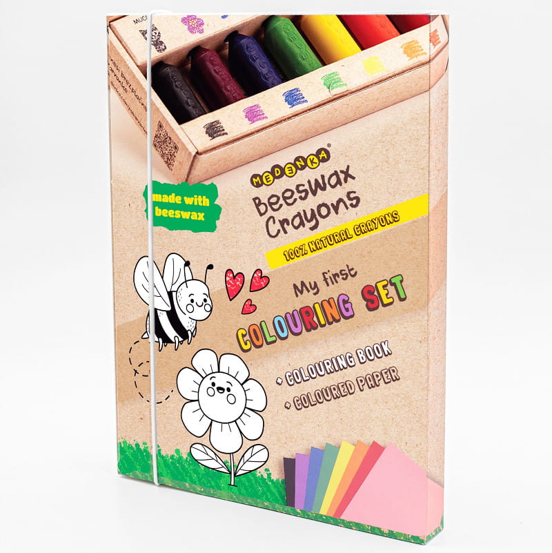 Nasze akcesoria plastyczne wyróżniają się nie tylko bezpiecznym składem. Oprócz tego mają przyjemny miodowo-kwiatowy zapach, a to dzięki czystemu, naturalnemu woskowi pszczelemu wykorzystywanemu do produkcji. Co więcej, zestaw nie zawiera kredek z papierowymi owijkami. W ten sposób dzieci mają kontakt fizyczny z naturalnym materiałem, który ułatwia im rysowanie. Przekonaj się sam, ile radości zapewnisz pociechom, wybierając zestaw do kolorowania Medenka!