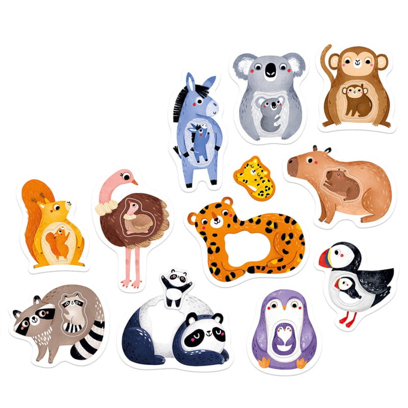 Pierwsze puzzle Mama i ja to wyjątkowy zestaw edukacyjny dla najmłodszych odkrywców i rewelacyjny pomysł na pierwsze układanki. Składa się z 11 dużych 2-elementowych puzzli z dziurką. Urocze ilustracje przedstawiają rodziców i maluchy – zabawa polega na dopasowaniu elementu do dziurki. Pozwala to doskonalić małą motorykę, spostrzegawczość i wyobraźnię, a także spędzać razem wyjątkowe chwile!