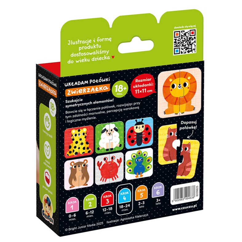 Puzzle do pary układam połówki znakomicie rozwijają małą motorykę i spostrzegawczość. To świetny sposób na poznawanie nowych umiejętności.