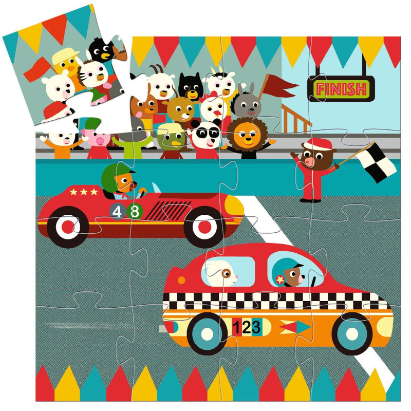 Puzzle tekturowe Wyścigówka marki Djeco.