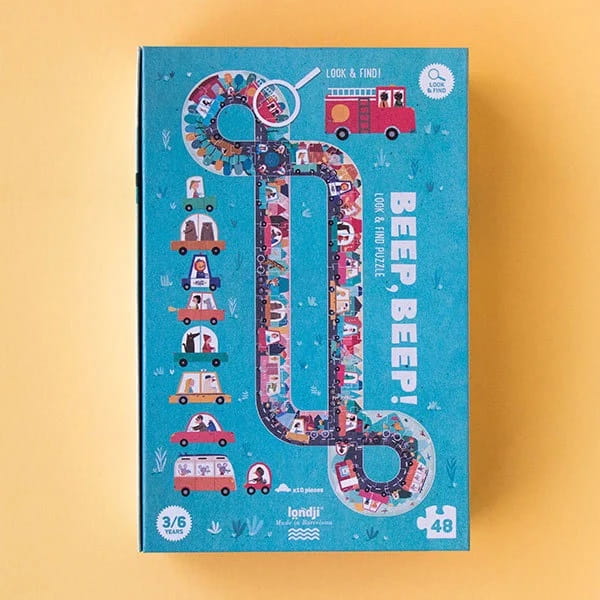 Układanka ma 48 elementów i 10 elementów w kształcie samochodów - do gry obserwacyjnej.