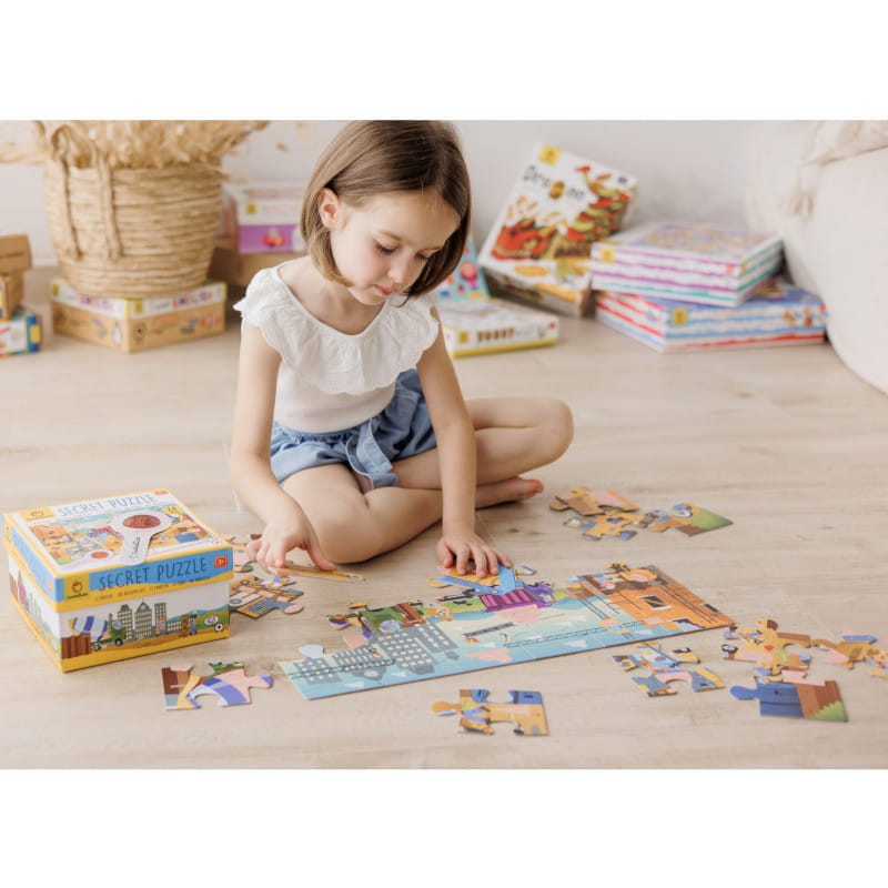 Pięknie ilustrowane puzzle z tajemniczymi elementami do wyszukiwania. W sam raz dla małych poszukiwaczy przygód