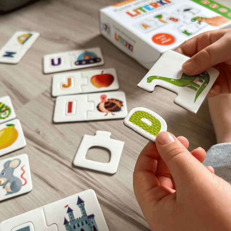 W czasie zabawy dziecko ćwiczy koncentrację i motorykę małą – wypukłe elementy zachęcają do wodzenia po nich paluszkiem. Te pomysłowe układanki pomogą dzieciom zapamiętać litery oraz zachęcą do pierwszych kroków w nauce czytania.