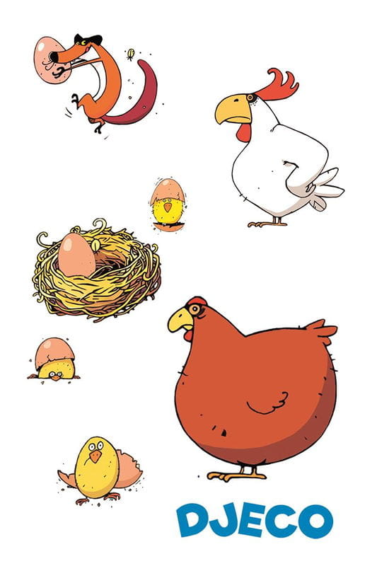 Gra strategiczna. Jest piknik w kurniku, jajka muszą się wykluć zanim ukradnie je lis. Ale oczywiście będzie potrzebny jeden kogut, jedna kura oraz gniazdo aby można było znieść jajko, dwie kury aby na nim siadły oraz siłę dwóch kogutów aby odgonić lisa. Jeśli jajko się wykluje, lis nie może już go ukraść. Pierwszy gracz który będzie miał 3 kurczątka, wygrywa.