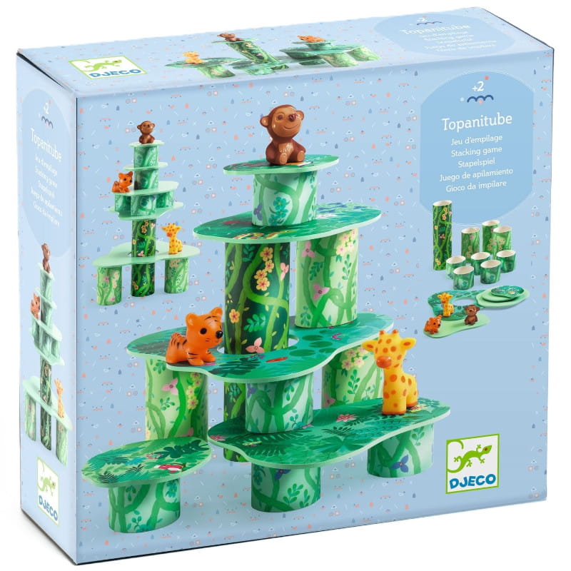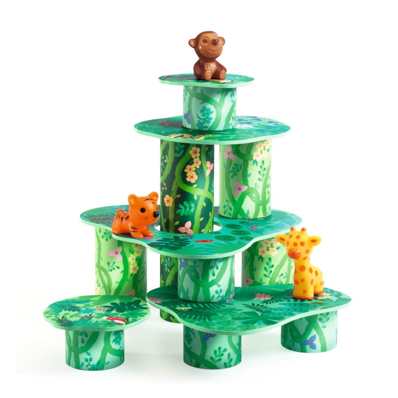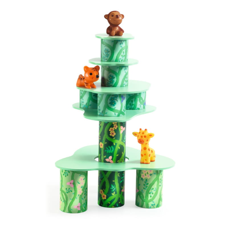 Z podanych części można tworzyć przeróżne konstrukcje w kształcie wież. Na tym zabawa się nie kończy, ponieważ do zestawu dołączone są również figurki zwierząt. Ułożone budowle mogą służyć jako wybieg w zoo lub las tropikalny.