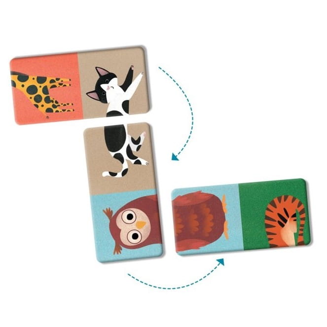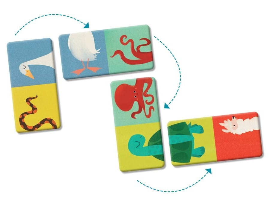 Domino uczy rozpoznawać zwierzątka i zwraca uwagę maluchów na ich charakterystyczne cechy, jak ułożenie ciała, sierść czy kolor. Podczas zabawy dzieci ćwiczą refleks oraz analizę i syntezę wzrokową. Muszą wykazać się nie lada spostrzegawczością, bo zwierzątka można układać wzdłuż i wszerz, a nawet do góry nogami. Z Domino można bawić się samodzielnie lub z innymi graczami: rodzicami, rówieśnikami lub rodzeństwem.