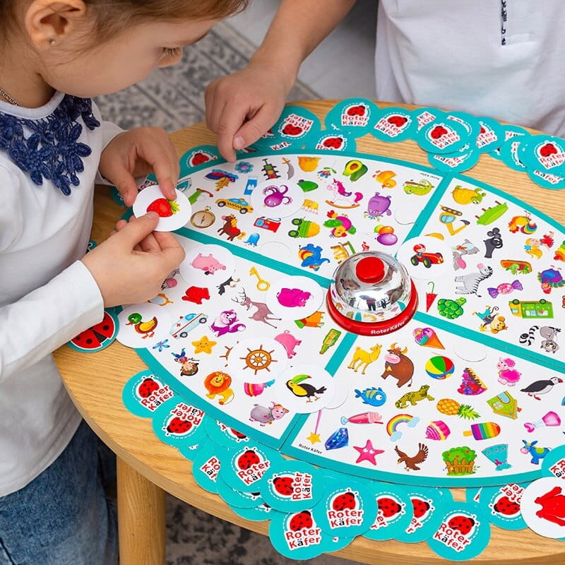 Wesoła i dynamiczna gra dla całej rodziny na szybkość reakcji. Na wyścigi szukajcie na planszy do gry zbieżności w fiszkach i naciskajcie dzwonek!