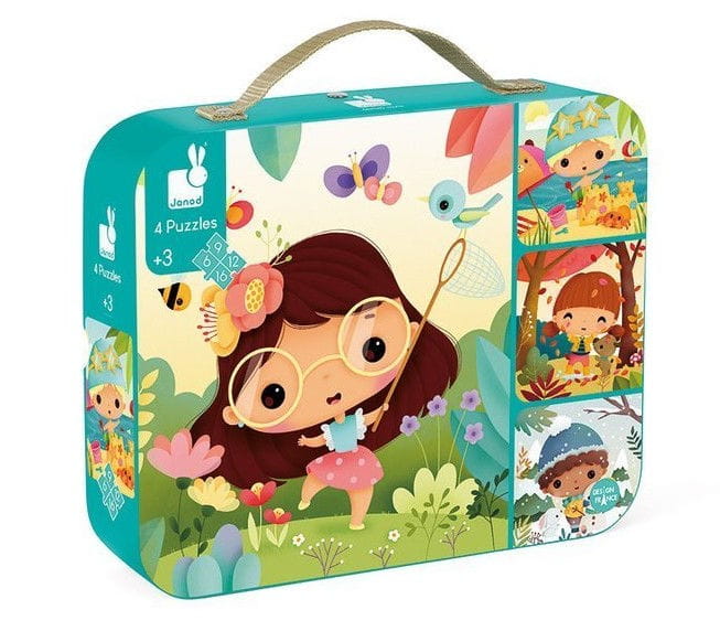 Puzzle progresywne w walizce Pory Roku marki Janod.