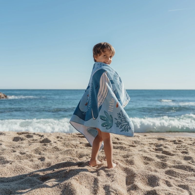 Ten wyjątkowo miękki ręcznik frotte wykonany jest w 100% z bawełny i ma wymiary 60 × 120 cm, idealne dla małych miłośników plaży.