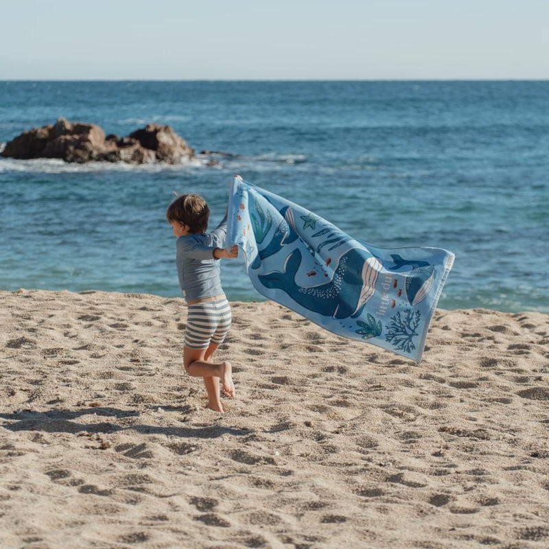 Ręcznik plażowy Ocean World Blue od Little Dutch.