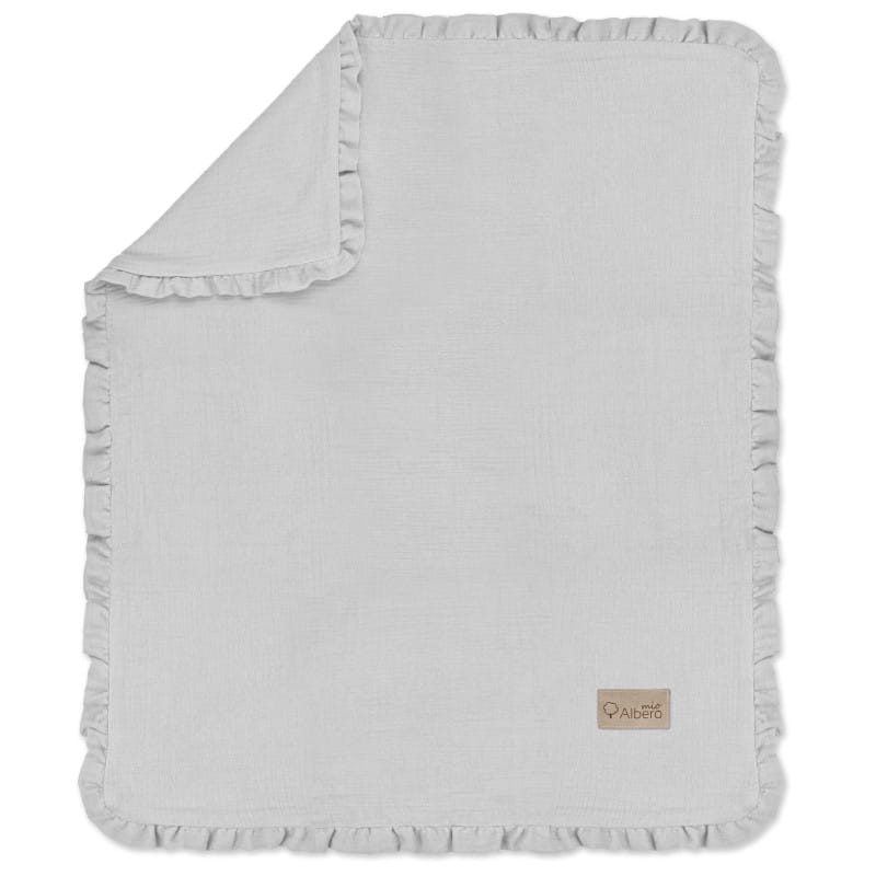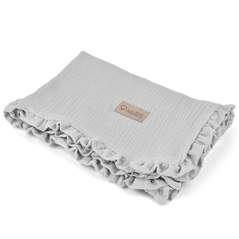 Kocyk muślinowy z falbanką szary polskiej marki Albero Mio.
