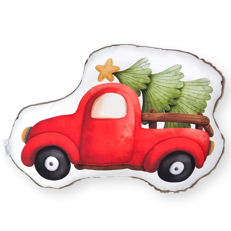 Motyw świątecznego Autka na poduszce to radosny i kolorowy wzor, który wprowadzi atmosferę magii Bożego Narodzenia do każdego pokoju.