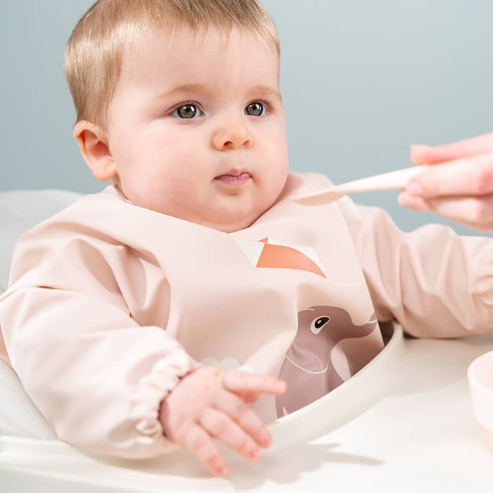 Praktyczny śliniak z rękawkami pozwoli zachować ubranko dziecka suchym i czystym podczas codziennej nauki samodzielnego jedzenia oraz zabaw plastycznych.