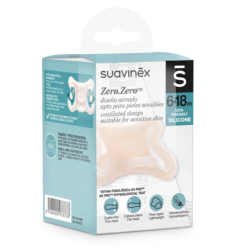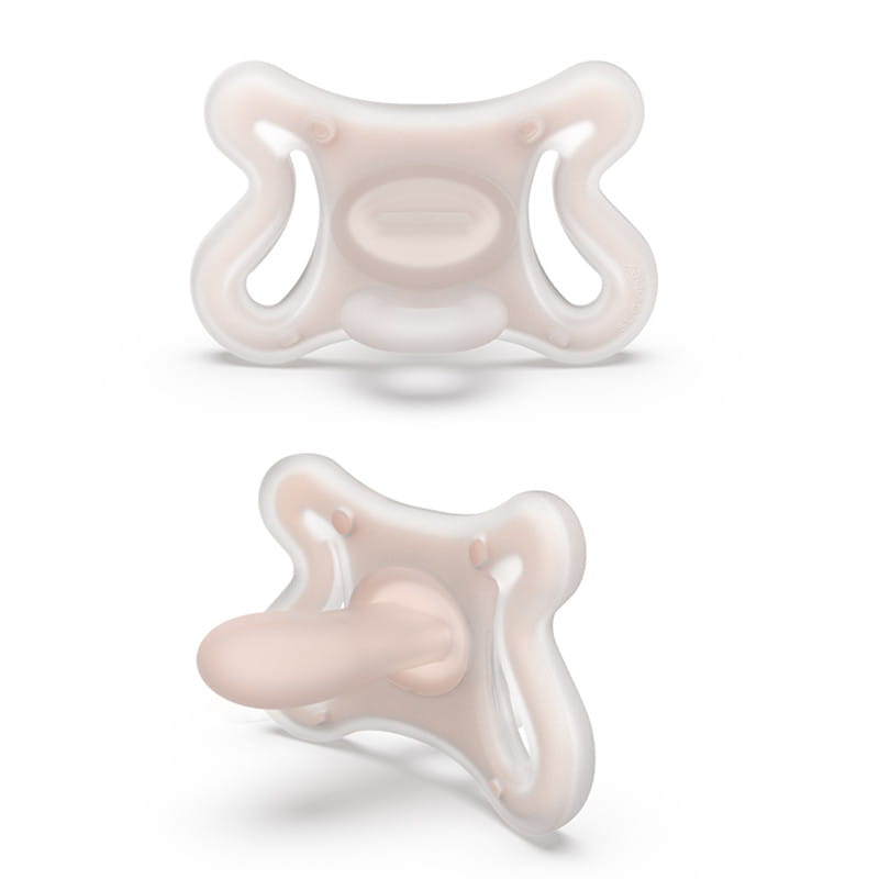 Smoczek fizjologiczny SX Pro™ gwarantuje, że język dziecka pozostaje w tej samej fizjologicznej, naturalnej pozycji, jak podczas ssania piersi. Zaprojektowany z szacunkiem dla rozwoju jamy ustnej dziecka. Smoczki są wyjątkowo miękkie i elastyczne i idealnie układają się w buzi dziecka, nie zaburzając naturalnego rozwoju jamy ustnej.