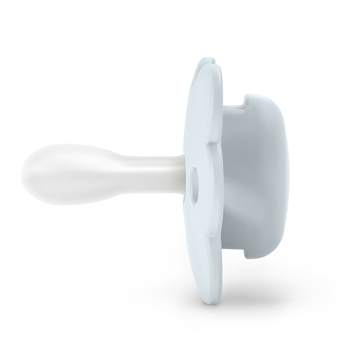 - płaska główka - pozostawia językowi wystarczająco dużo miejsca, aby przyjął on naturalną pozycję. Również dzięki elastyczności miękkiego silikonu pozwala językowi bez wysiłku odkształcać smoczek, dopasowując go do jamy ustnej.