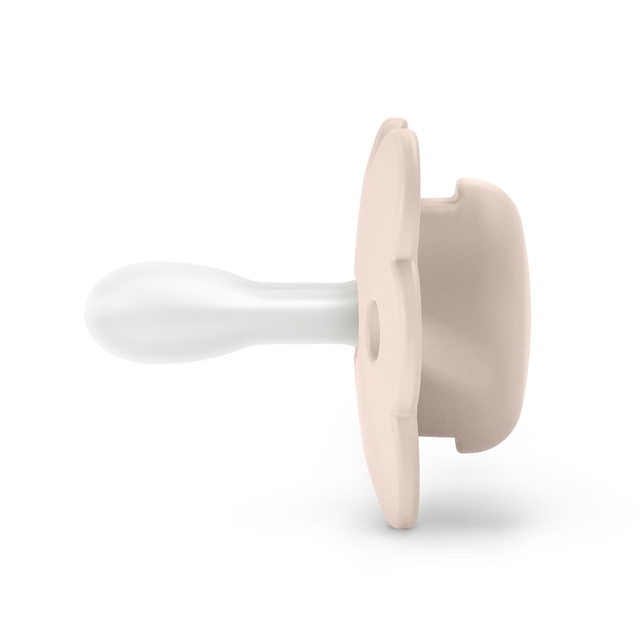 Smoczek wykonany jest z ultra cienkiego silikonu ze strukturalnym wykończeniem co zapewnia dużą elastyczność smoczka i imituje dotyk i teksturę brodawki sutkowej matki uzyskując maksymalny komfort i dopasowanie.