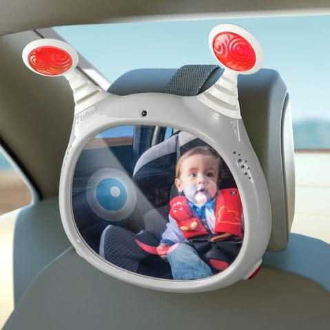 Aktywne lusterko montuje się do tylnego lub przedniego zagłówka fotela. Produkt wyposażony jest w szerokie, wypukłe lusterko, które zabawnie miga oczami, uśmiecha się i gra, umilając dziecku dalekie i bliskie podróże samochodem.