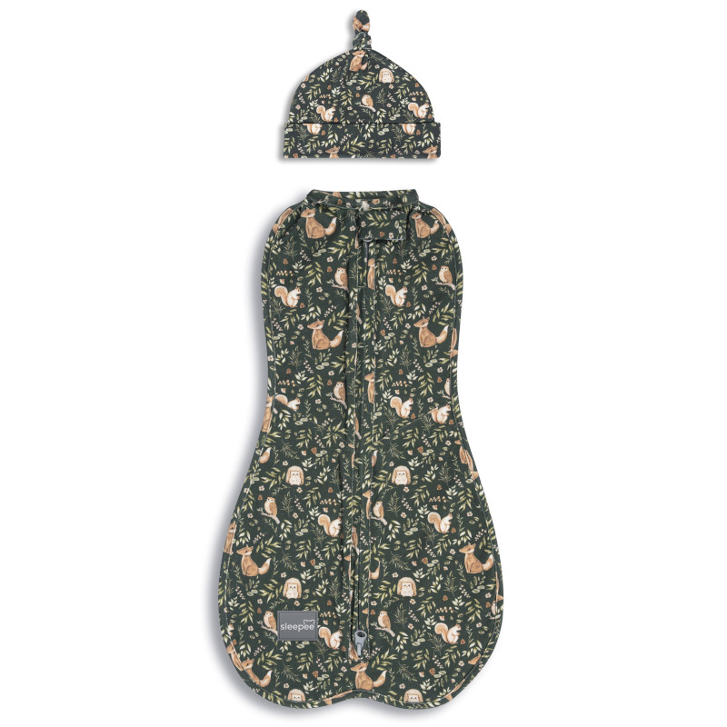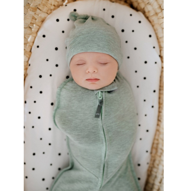 Pierwszy otulacz do spowijania dla niemowlaka w komplecie z czapeczką polskiej marki Sleepee.
