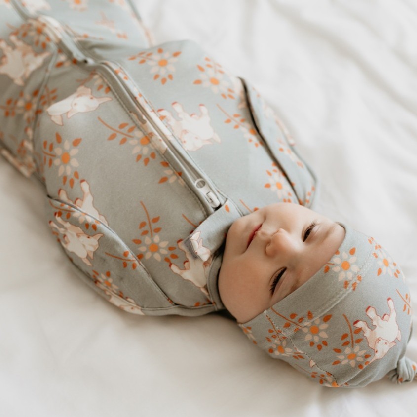 Otulacz do spowijania dla niemowlaka w komplecie z czapeczką polskiej marki Sleepee.