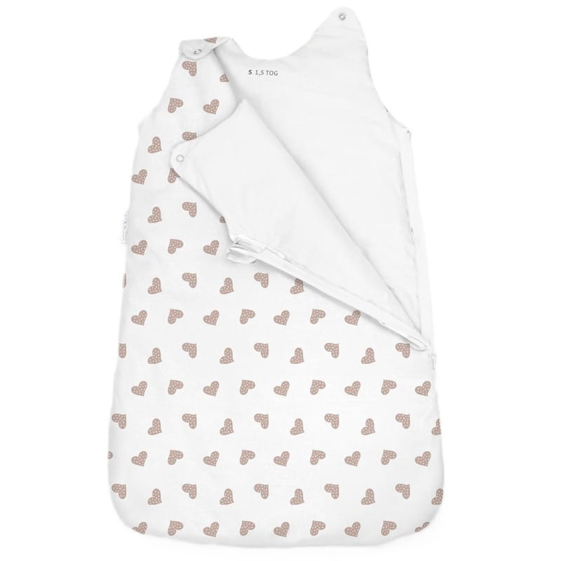 Z boku śpiworka znajduje się długi, dwustronny zamek, który pozwala na szybkie i wygodne przebranie pieluszki, bez rozbudzania maleństwa. Na każdym ramieniu znajdują się napa, dzięki czemu śpiworek można błyskawicznie zapiąć i odpiąć.