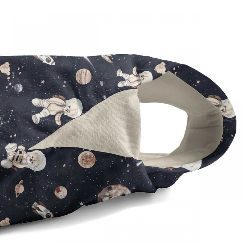 Ten śpiworek nie tylko przyciąga uwagę pięknym, autorskim wzorem, ale także przekonuje jakością niezwykle miękkiej a jednocześnie wytrzymałej bawełniany premium. Wnętrze śpiworka uszyte jest z miękkiego, przyjemnego dla ciała jerseyu.
